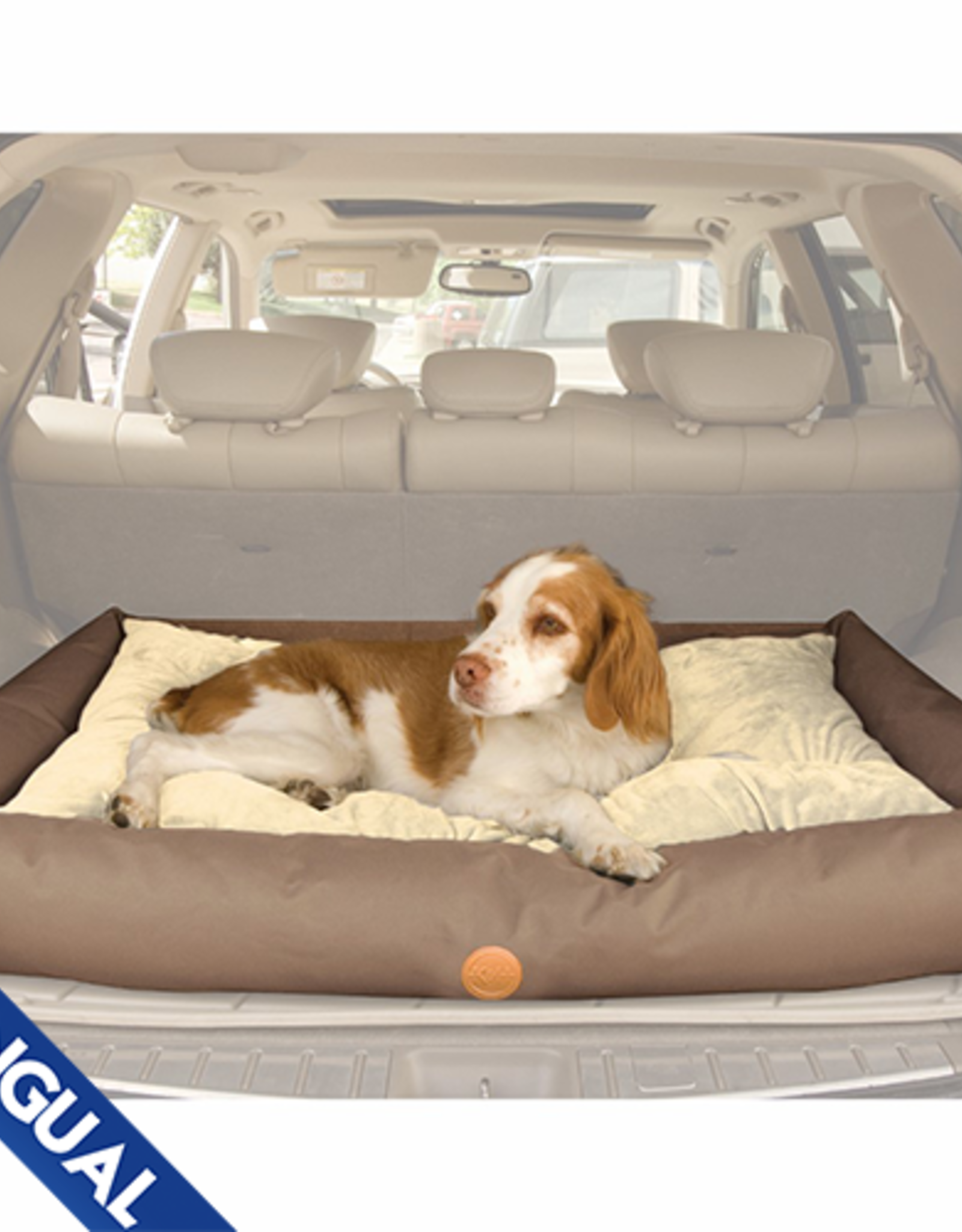 Every pet needs a place to feel secure and call their own in your vehicle. The small size fits perfectly in a small to mid-sized SUV while the large fits great in a mid to full size SUV. The gray and tan colors complement most automobile interiors. The outside bolster is made from 600 denier nylon with a water-resistant backing. The removable cushion is made from soft and luxurious microfleece. Cushion has tufting to keep the premium polyfil in place. The bottom of the bed has a “stay-put” non-slip fabric to keep the bed in place. Easy machine wash and care. This bed also has a matching Car Seat Saver available.